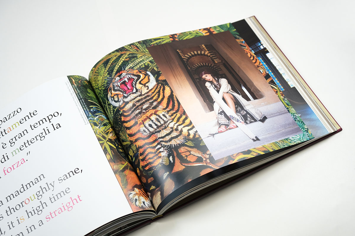Risguardi in carta oro per restare nei toni stilistici, capitelli in doppio colore per sottolineare la ricercatezza e unicità dell’opera, custodia fustellata per evidenziare il logo in copertina sono altri dettagli che hanno concretizzato ancora di più la singolarità del progetto.